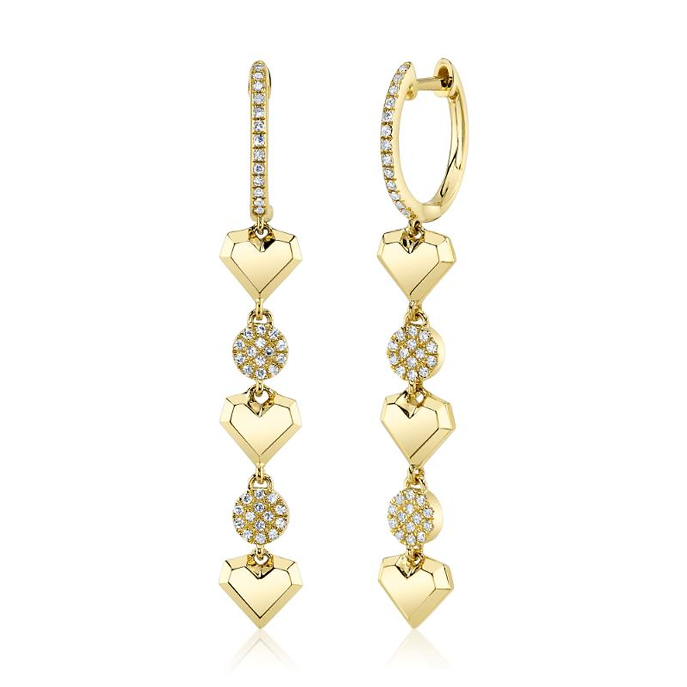 SHY CREATION .19CTTW PAVE DIAMOND CIRCLES GEO CUT HEART DANGLE HUGGIE EARRINGS
